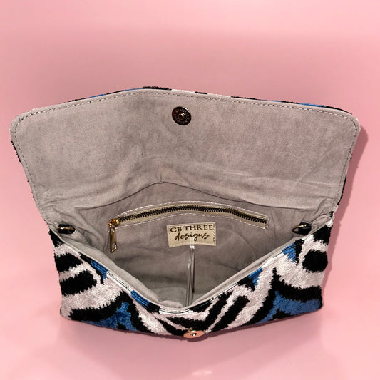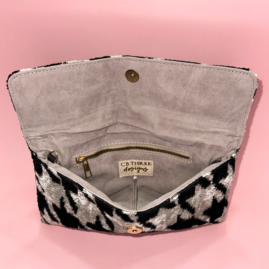 The perfect size clutch comes with a beautiful gold chain to wear as a crossbody or simply grab and go using this bag as a clutch. It is elegant and classy!
